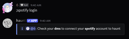 ;prefix set [character] to change the prefix for your server.Connecting your Spotify account