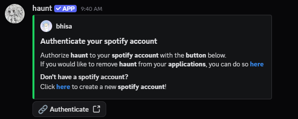 In your dms should be an authenicate button, Click on this button to authorize haunt to your account.